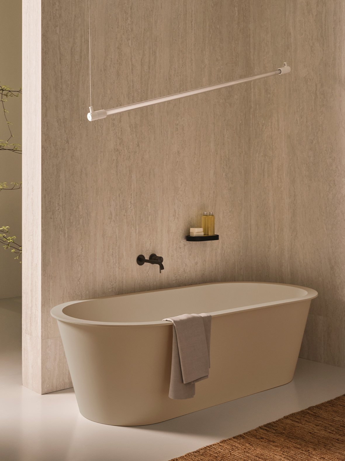 Ceramica Cielo extends part of the rich colour range of its Acque and Terre colour palettes, already featured in its washbasin and sanitary ware collections, to its freestanding bathtubs, thus offering even greater material and chromatic continuity. Iconic models that have become symbols of the brand, such as Ottavia, Ofelia, Febe and Dafne, designed by Andrea Parisio and Giuseppe Pezzano, are now joined by Shui Comfort, with its equally sophisticated design characterised by soft, enveloping shapes is now available in the colours of Pomice, Brina, Arenaria, Avena, Lino, Agave, Cemento, Basalto and Lavagna. These finishes expand the expressive possibilities of the entire collection, allowing the bathtubs to blend naturally with the overall surfaces, furnishings and volumes of the contemporary bathroom.
