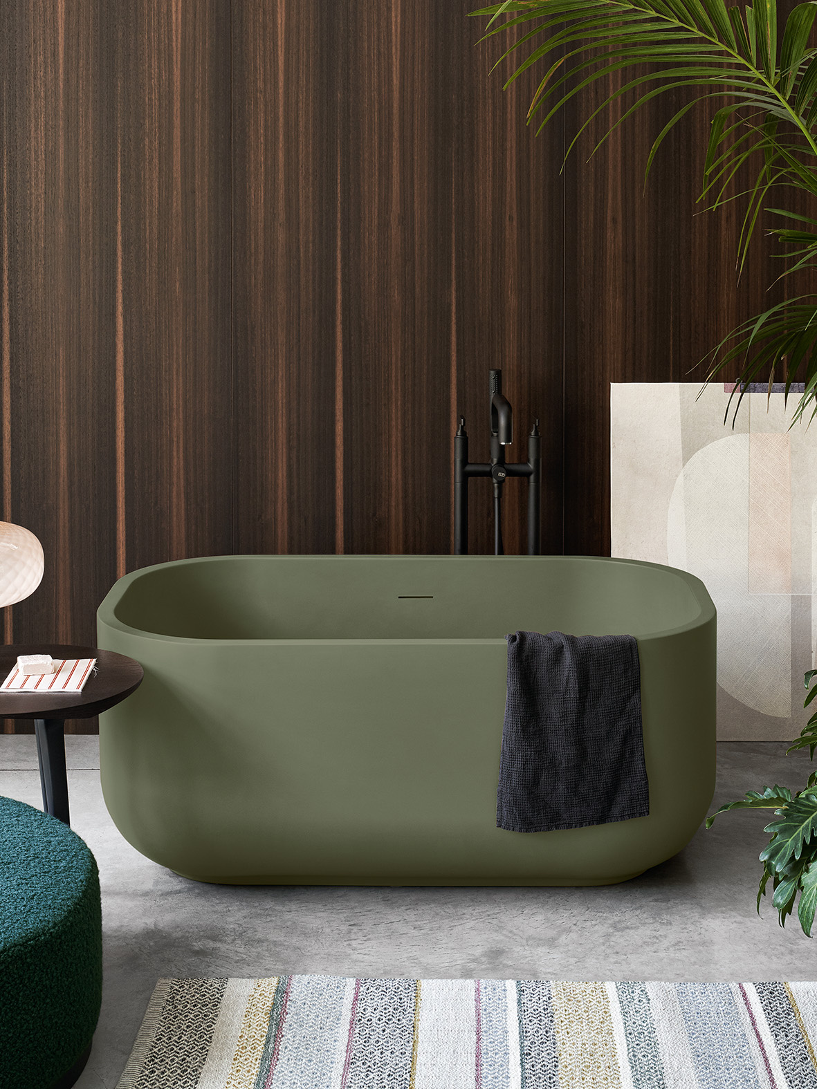 The bathtubs are made of Solid Surface, a cutting-edge material distinguished by its compactness, seamless construction, velvety feel, and extremely refined aesthetic appeal. The polished surface recalls the natural elegance of stone and offers a unique sensory experience thanks to its characteristic soft touch effect. The composition, based on mineral fillers and natural resins, guarantees high performance in terms of resistance, mechanical stability, hygiene, and durability. Antibacterial, virucidal, antifungal, and self-cleaning, the Solid Surface used by Cielo is also an ideal choice for contract projects. These properties have also earned Cielo bathtubs to achieve the Green Guard Gold Certification, an international certification that confirms their sustainability and low emissions of volatile compounds.