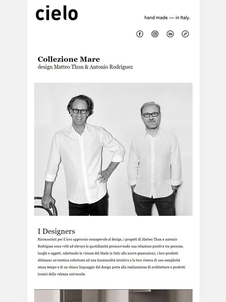 P.iva IT01622510566 Ceramica Cielo is part of the Mittel Group through its subsidiary Italian Bathroom Design Group S.r.l., which owns the company and reinforces its presence in the designer bathroom furnishings sector.;italianbathroomdesign.com